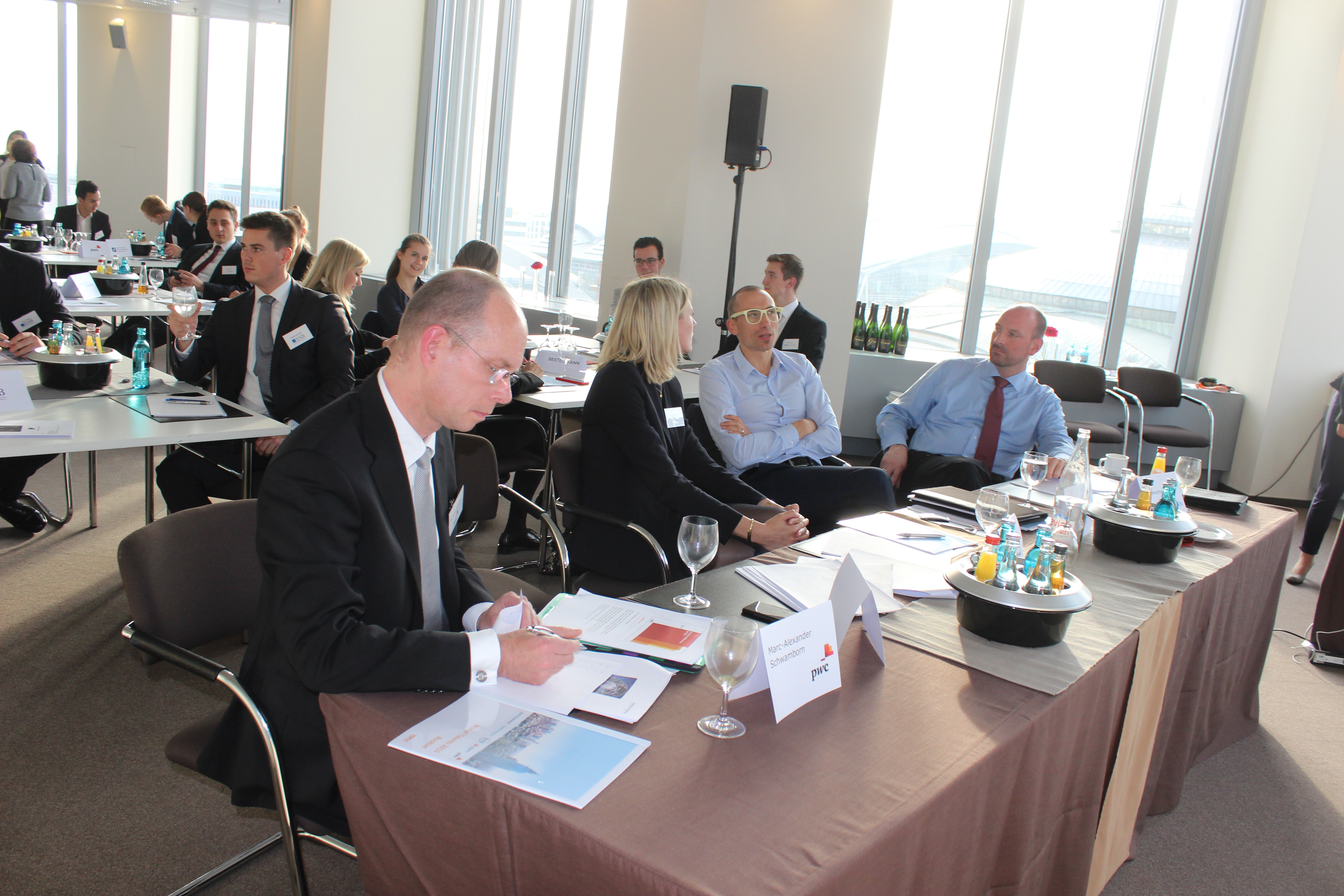 - Beim anschließenden Dinner kannst du Kontakte zu Unternehmensvertretern knüpfen und dich über Einstiegsmöglichkeiten informieren.